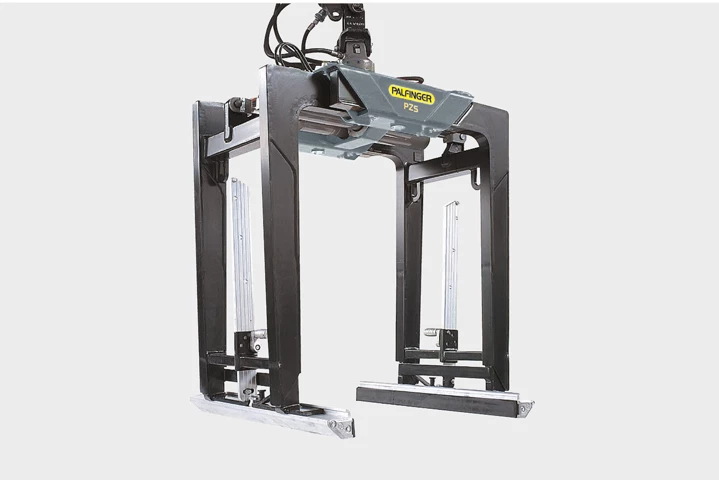 Brick Cranes and Grapples transform your vehicle into a brick loading truck or brick grab lorry. The technically mature brick stack grapples are the ideal crane tools for the handling of palletized but also not palletized bricks stacked neatly in a block. The adjustable plunge depths and the optimized opening widths allow easy loading of individual concrete elements as well as complete brick pallets. Due to the low-wear rubber inserts in the pressure rails, the brick stack grapples are particularly easy to maintain.